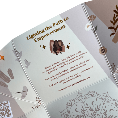 Handcrafted in Amman by resilient Arab women, each candle is poured with non-toxic, eco-friendly wax for a mindful burn. Every package carries a note from the woman who made it—reminding you that your ritual supports both serenity and empowerment.